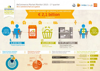 依照BeCommerce之前公佈的比利時2015年第一季度分析報告,在2015年第一季度的網路商務不含運費的淨營業額約有21億歐元(約756億元新台幣),有將近7百萬比利時人透過產生約2千萬張訂單,帶來倉儲與貨運營收將近5千萬歐元(約18億元新台幣),平均訂單價值超過100歐元(約3,600元新台幣)